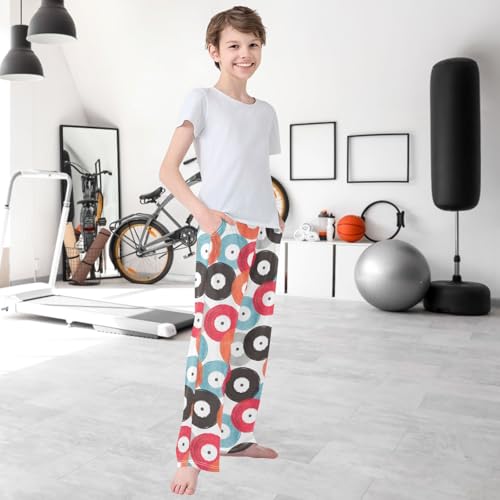 Boy's Pants Colorful Retro Musical Pattern Jogger Pants Elastic Waist Long Bottoms Trousers with Pockets 6-14 Years 4