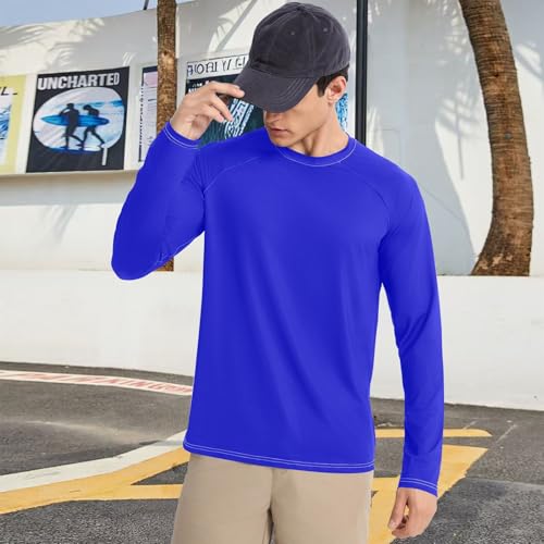 • CREW NECK: Men's Rash Guard Crew-neck offer excellent sun protection and flatlock seams offer no-chafe comfort, for outdoor activities like golf, fishing, hiking, traveling, boating, climbing, running, workout, etc.