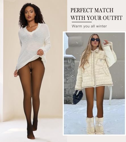 • 【IDEAL LAYERING FOR WINTER, SPRING AND FALL】Discover the perfect blend of comfort and style with fleece lined leggings women. Sheer leggings for women can be well match with under pants, shorts, skirts, long sweaters, dresses, skirts, skirts, coats, boots, heels, etc., keep your legs warm and comfortable in the cold weather.