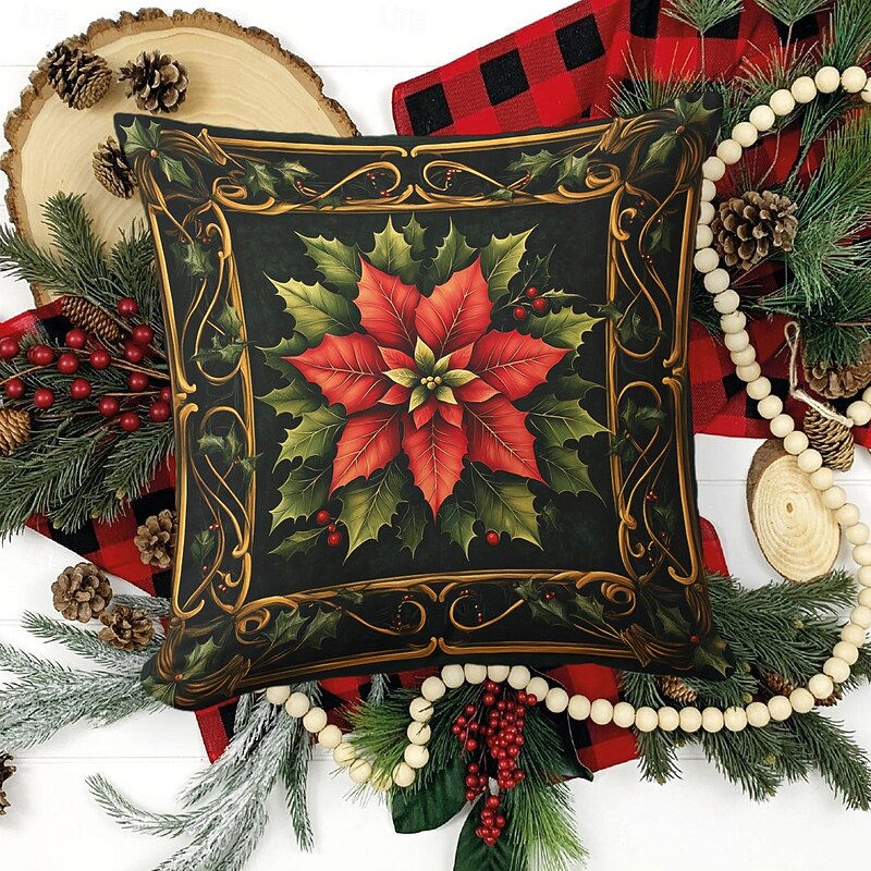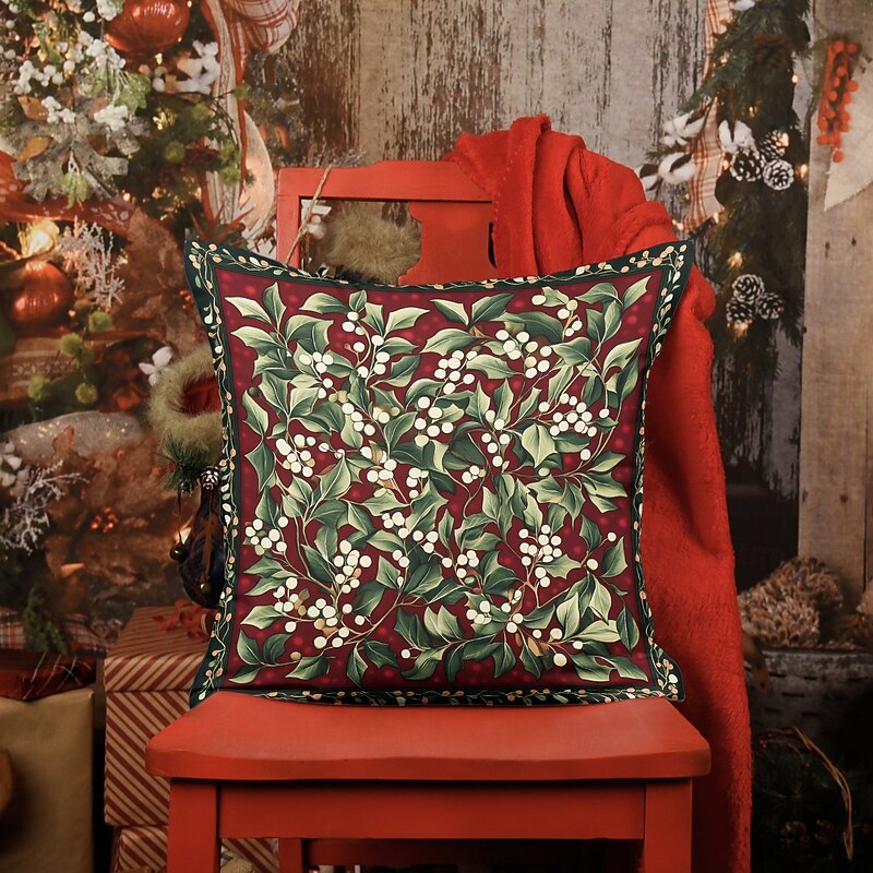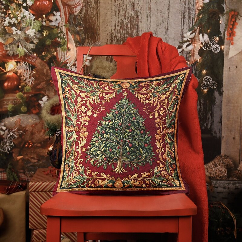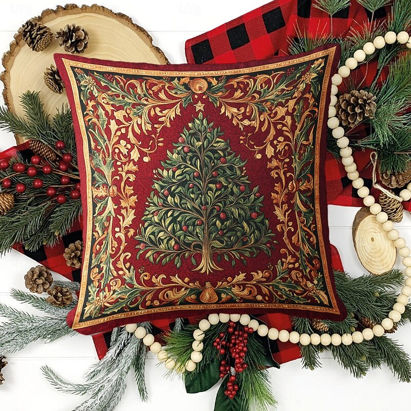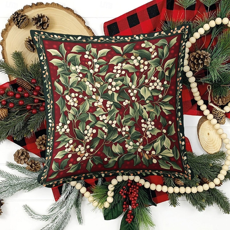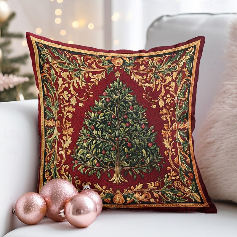 Christmas Decorations Decorative Toss Pillows Cover 1PC Holly Tree silky Square Cushion Case Pillowcase for Bedroom Livingroom Sofa Couch Chair