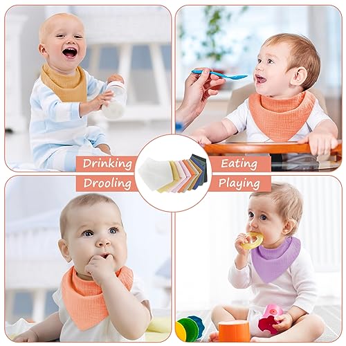 Muslin Baby Bibs, 10PCS Baby Bandana Drool Bibs, 100% Soft Anti-Penetration Snap Muslin Cotton Bib for Girls and Boys, Strong Water Absorption for Drooling and Teething 7