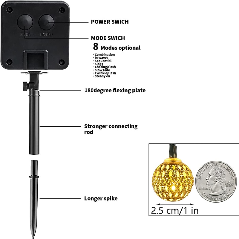 More information about Solar Moroccan String Lights Christmas Ball Fairy String Lights 12m 7m 6.5m Outdoor Garden Lights IP65 Waterproof New Year Wedding Party Patio Tree Hanging Lights Xmas Decor Landscape Lamp
