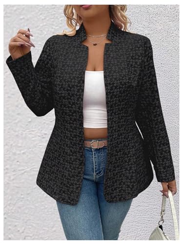 HOT ! OYOANGLE Women's Plus Size Jacquard Long Sleeve Open Front Blazer Jacket Notch Collar Work Dressy Coat Outerwear