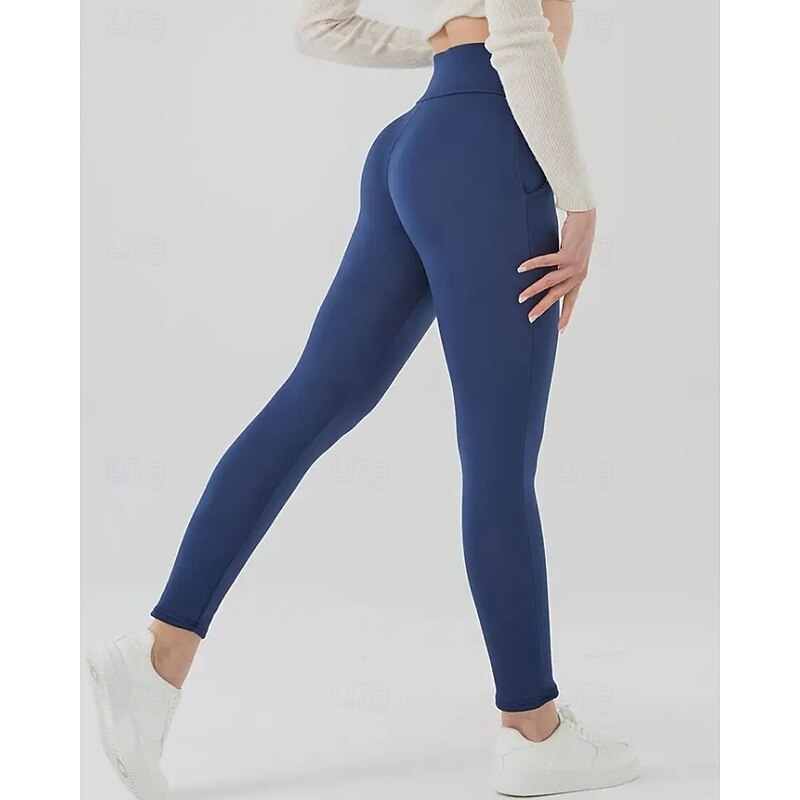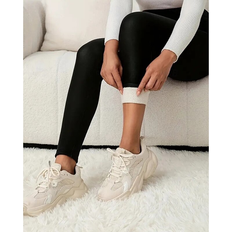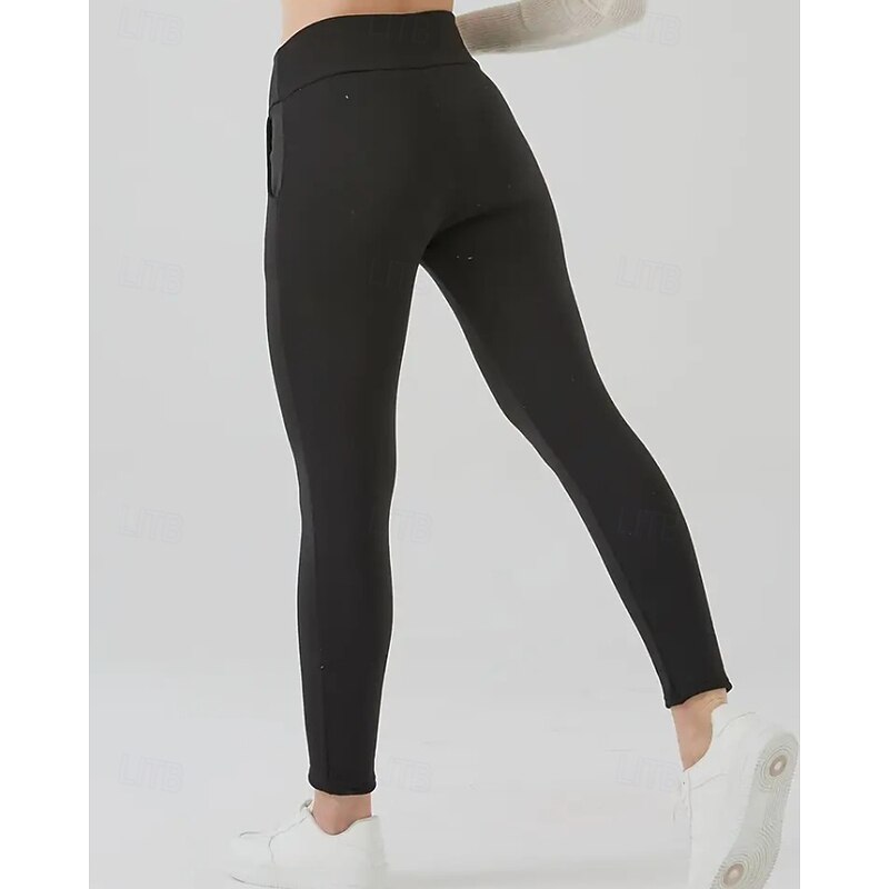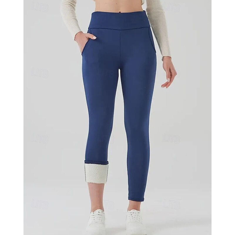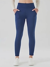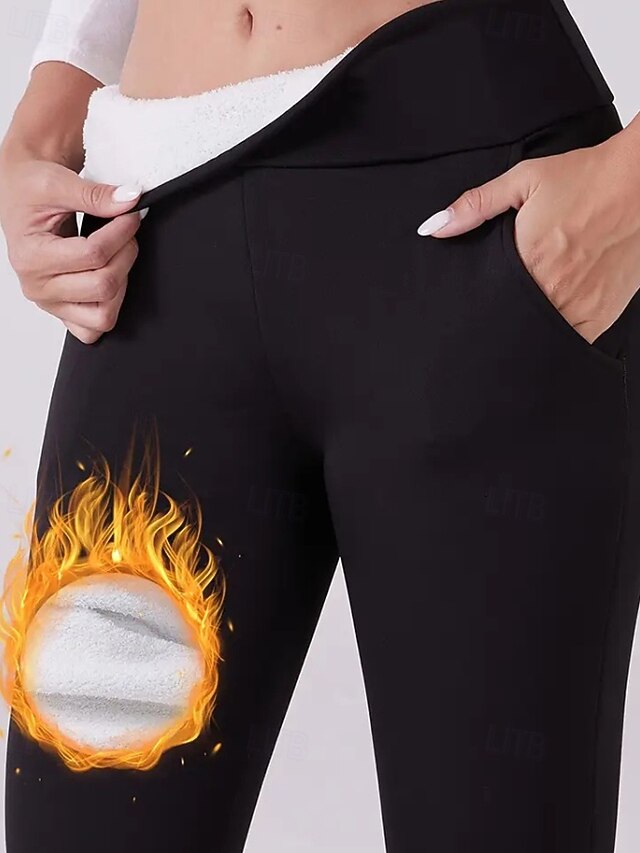 More information about Women's Chinos Leggings Cozy Fleece Lined Vacation Vintage Streetwear Full Length Medium Waist Plain Pocket Elastic Waist Warm Comfortable Micro-elastic Stretchy Outdoor Vacation Daily claret