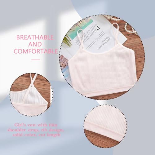 - Spaghetti straps vest for kids girls, ribbed design, solid color, cropped length