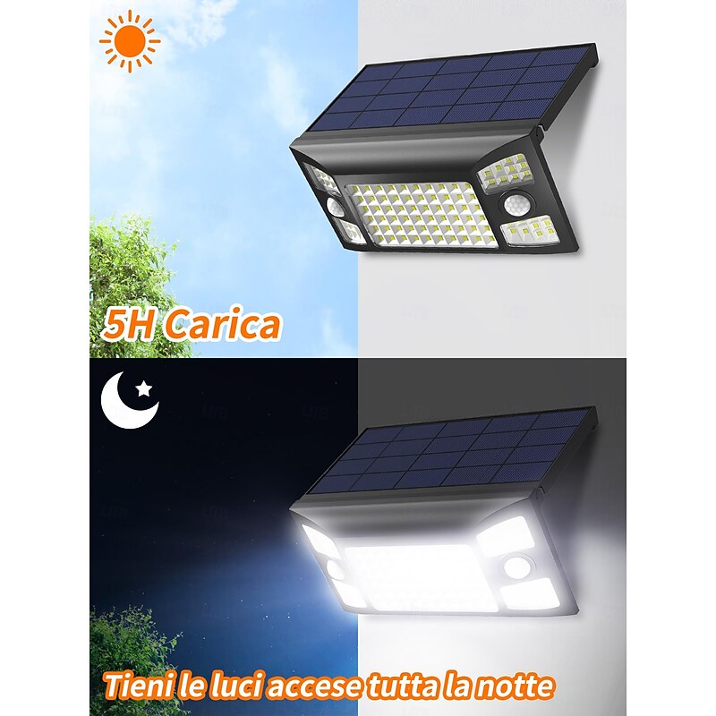 1 Pc Outdoor Solar Waterproof Wall Light with 100 High Brightness Beads, Three Sided Illumination, Human Sensing, Long Battery Life 10