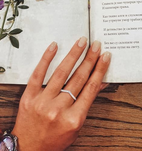 TIGRADE Cubic Zirconia Eternity Ring V Shape Stacking Ring Minimalist CZ Statement Band for Women Size 3-13 5
