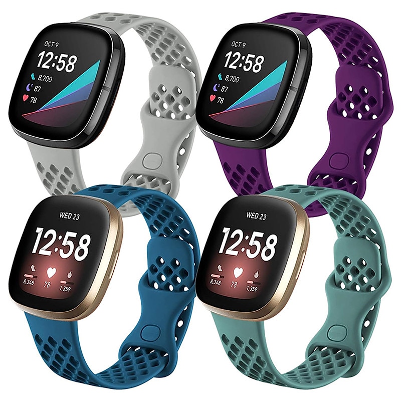 4 Pack Smart Watch Band Compatible with Fitbit Versa 3 Sense Versa 4 Sense 2 Silicone Smartwatch Strap Waterproof Adjustable Sport Band Replacement  Wristband 11