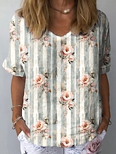 More information about Women's Shirt Floral Graphic Plants Stylish Classic Casual Short Sleeve Crew Neck Regular Tops Daily Beach Wear Vacation Wear Print Light Green Khaki Light Blue Summer Spring
