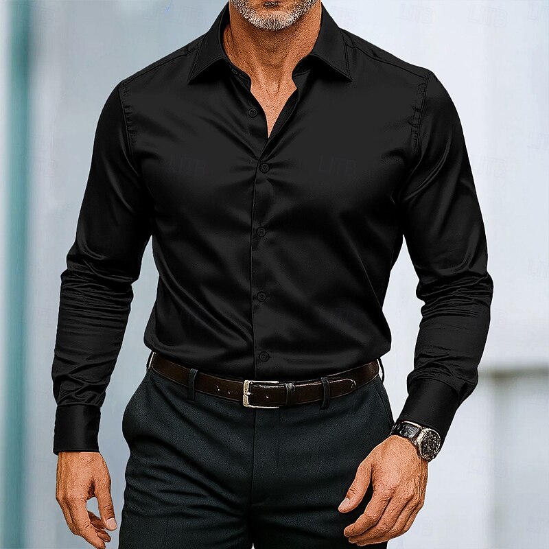More information about Men's Shirt Satin Shirt Dress Shirt Casual Shirt Button Up Shirt Prom Shirt Plain Formal Wedding Black White Wine Blue Long Sleeve Lapel All Seasons Clothing Apparel