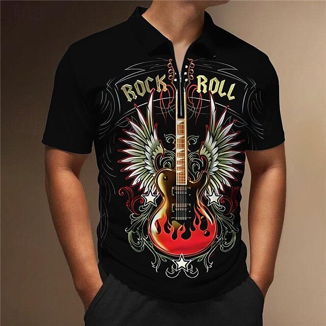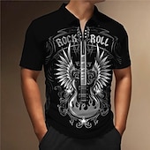 More information about Music Festival Men's Guitar Zip Polo Shirts Golf Shirt Short Sleeve Polo Shirts Collared Shirts Casual Vacation Wear Festival Wear Party Outfits 3D Print Quarter Zip Polo Black Red Gray
