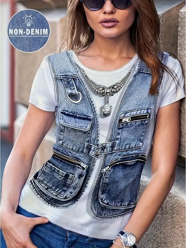 More information about Women's T Shirt Graphic Vintage Stylish Western Short Sleeve Crew Neck Round Neck Regular Tops Daily Going out Weekend Print Blue Summer Spring