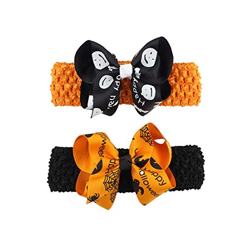 4 Pack Halloween Headband Pumpkin Bowknot Elastic Hair Fits for Baby Toddler Girls Newborn and Infant 2