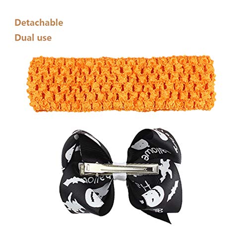 4 Pack Halloween Headband Pumpkin Bowknot Elastic Hair Fits for Baby Toddler Girls Newborn and Infant 7