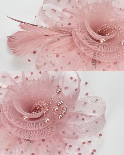 • Elegant 1920s-1950s Inspired Design: Timeless fascinator features a classic mesh base with a charming feathers centered by peals and Mesh Flower , capturing the glamorous essence of vintage British horse racing fashion. Perfect for adding retro sophistication to any outfit.