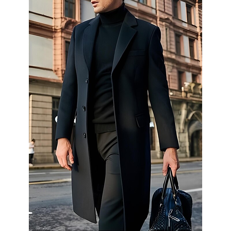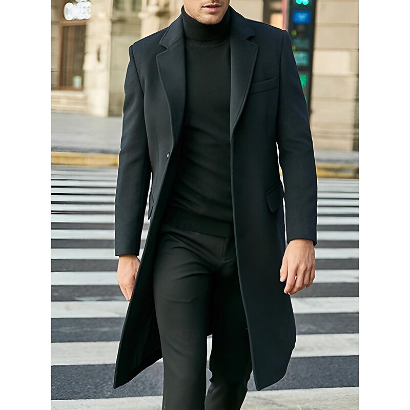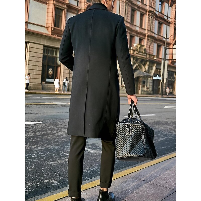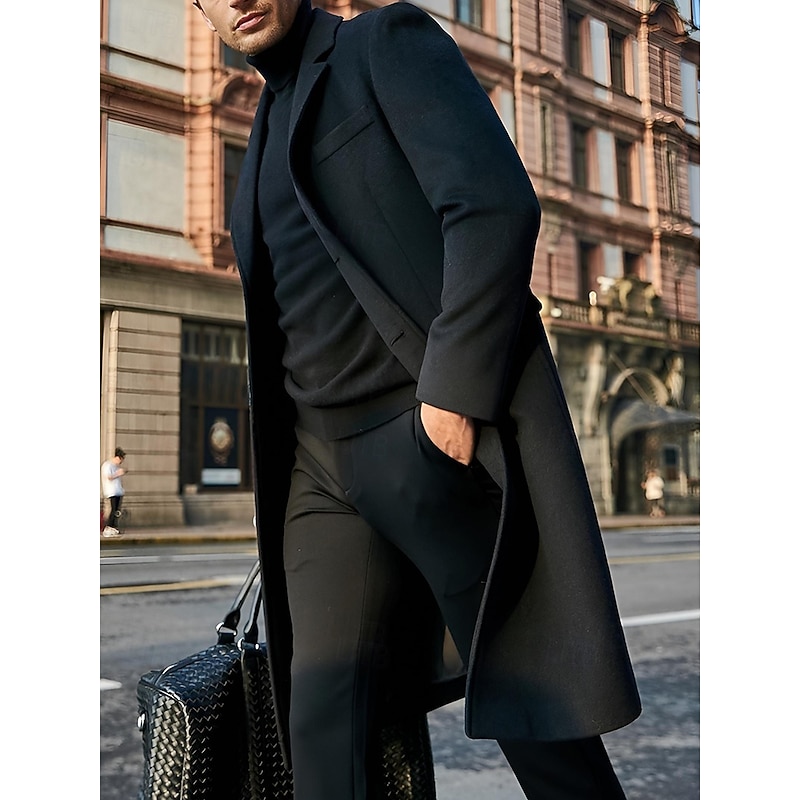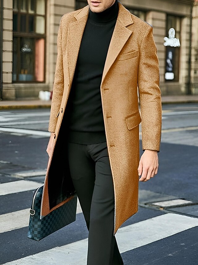 Highlights [Fabric and Material]: Crafted from a high-quality polyester taffeta, this men’s overcoat provides excellent warmth and comfort, with a soft, luxurious texture that’s perfect for fall and winter wear. [Fit and Silhouette]: The coat features a tailored fit that offers a sleek and sophisticated silhouette, ensuring an elegant appearance suitable for various occasions. [Design Highlights]: This overcoat boasts a classic design with a notched lapel and a single-breasted button closure, complemented by a buckled detail that adds a modern touch. Two flap pockets on the front provide both practicality and style. [Suitable Occasions]: Ideal for daily wear, this coat is versatile enough to transition effortlessly from professional to casual settings. It’s a refined addition to any wardrobe, perfect for both workdays and leisurely outings. [Size Range]: Available in an inclusive size range from S to 3XL, ensuring a comfortable fit for varying body types.