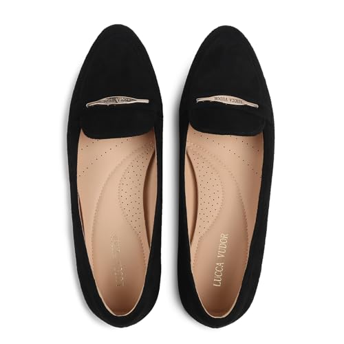 • 【Rounded Toe Design】Classic round toe flats shoes can make your feet look smaller and more feminine, exquisite metal decoration adds fashion and elegant, its unique shape giving complete freedom of movement. LUCCA VUDOR will be an instant favorite in your modern-casual shoe collection and are the ideal women‘ s shoes.