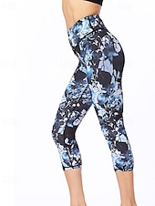 More information about Women's Capri Pants Leggings Cozy Leggings Streetwear Casual Calf-Length Natural Floral Print Comfy Outdoor Comfortable Outdoor Holiday Going out Black and Blue Navy Light Sky Blue Grey Summer