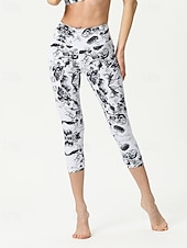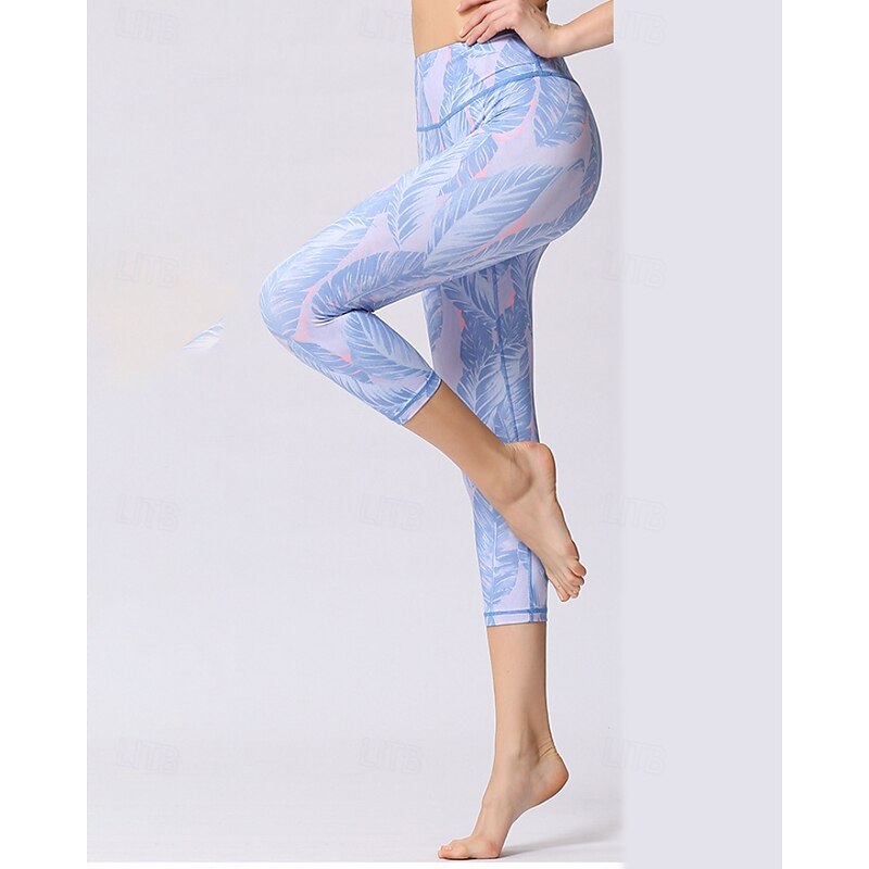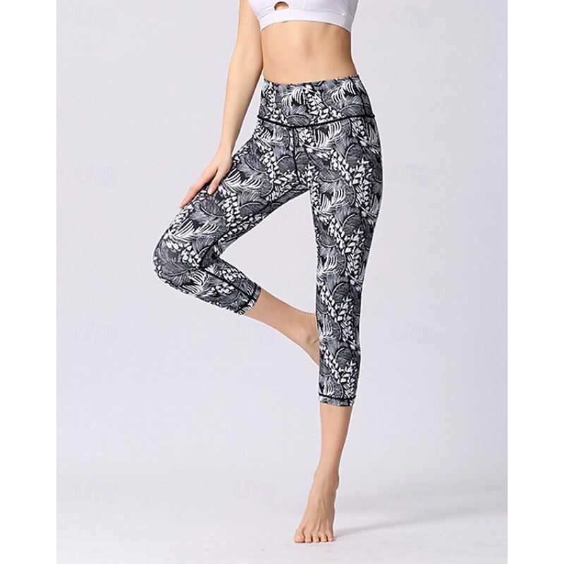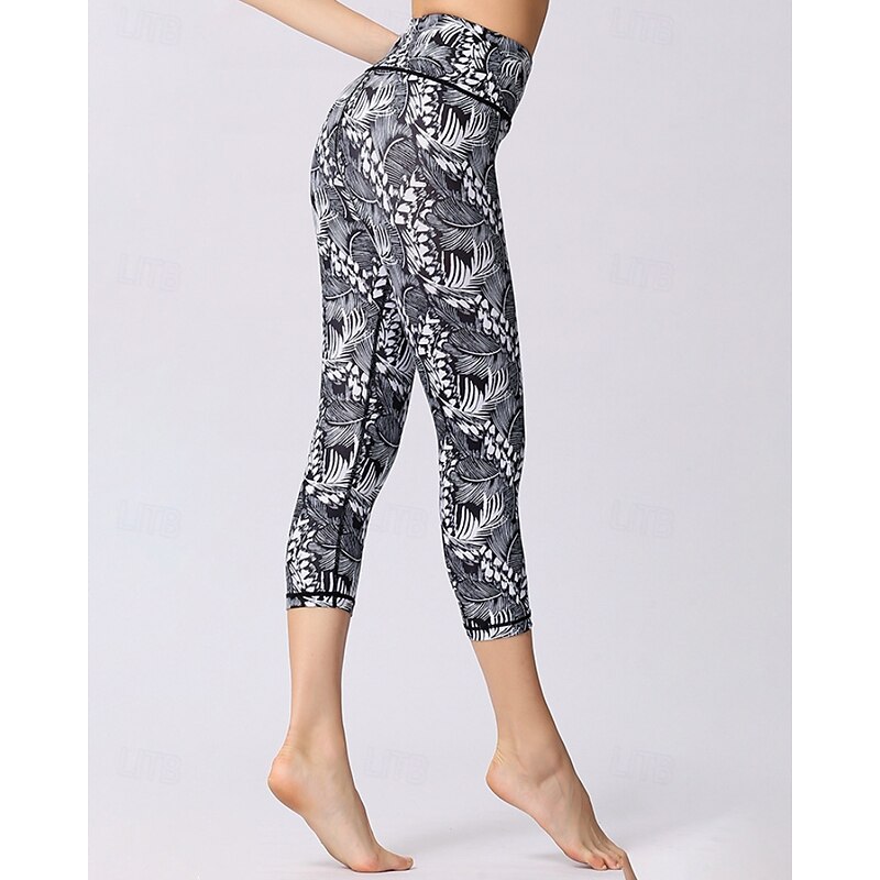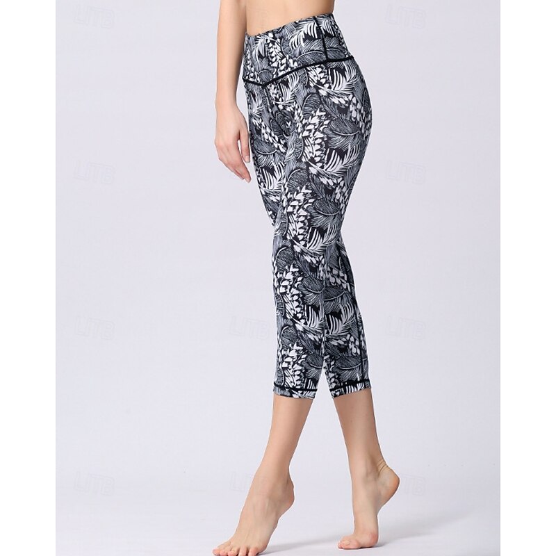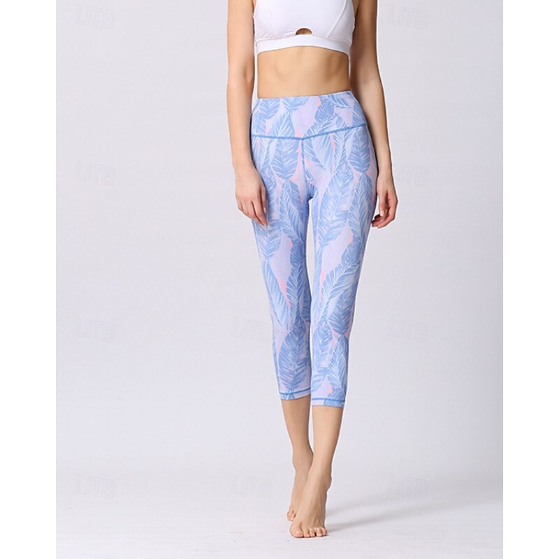 Women's Capri Pants Leggings Cozy Leggings Streetwear Casual Calf-Length Natural Floral Print Comfy Outdoor Comfortable Outdoor Holiday Going out Black and Blue Navy Light Sky Blue Grey Summer 16