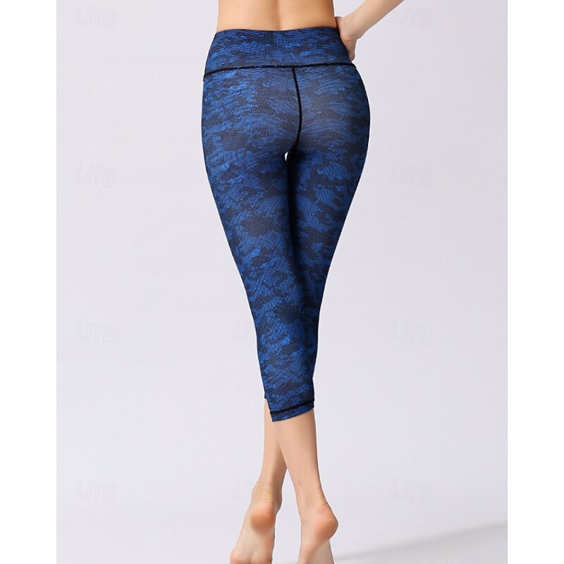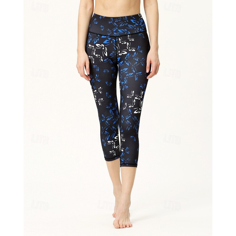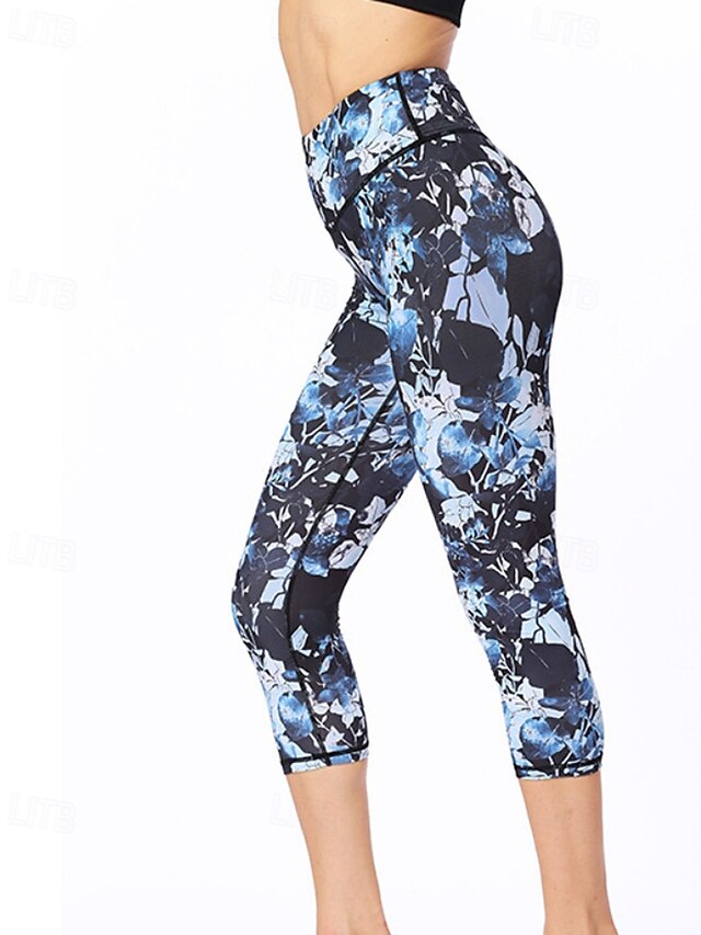 Women's Capri Pants Leggings Cozy Leggings Streetwear Casual Calf-Length Natural Floral Print Comfy Outdoor Comfortable Outdoor Holiday Going out Black and Blue Navy Light Sky Blue Grey Summer 18