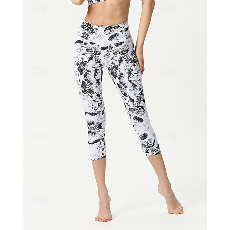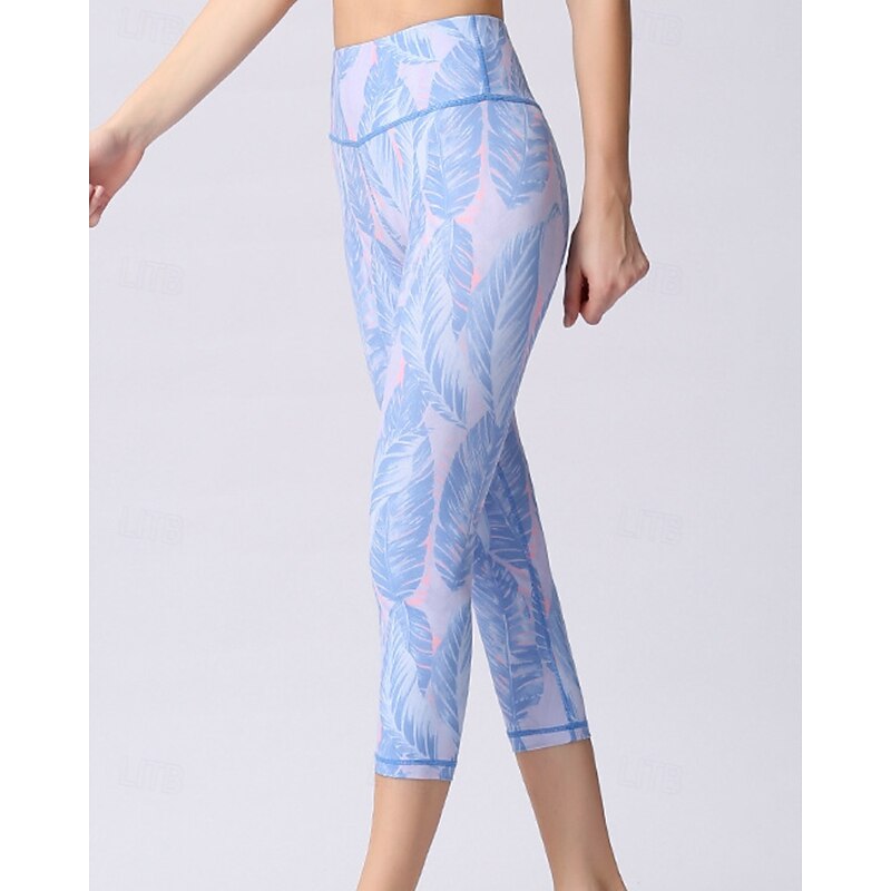 Women's Capri Pants Leggings Cozy Leggings Streetwear Casual Calf-Length Natural Floral Print Comfy Outdoor Comfortable Outdoor Holiday Going out Black and Blue Navy Light Sky Blue Grey Summer 25
