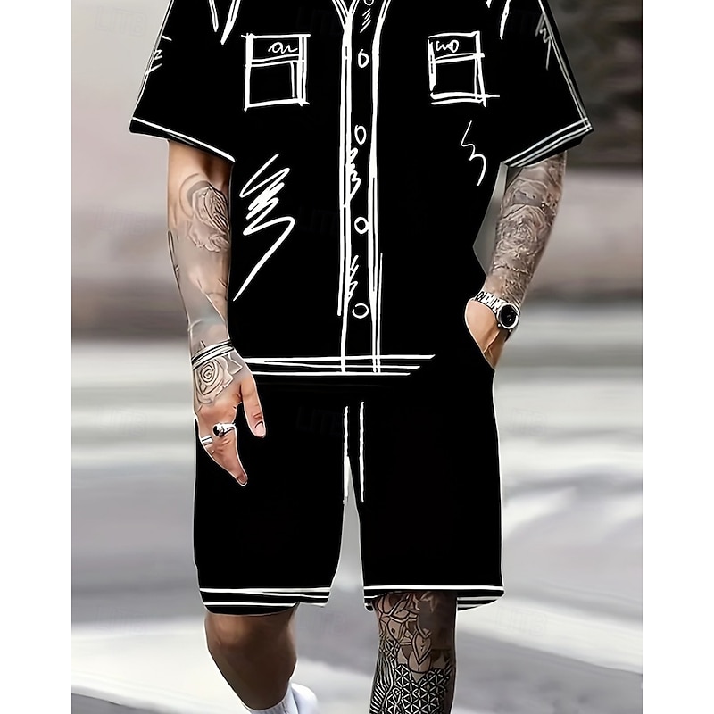 More information about Men's T-shirt Suits 2 Pieces Outfits Tee & Shorts Short Sleeve Crew Neck Summer Graphic Fashion Casual 2 Piece Vacation Daily Wear Going out Black White Top Tee for Men