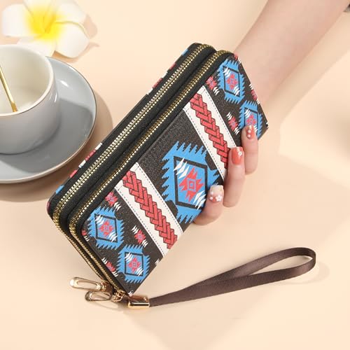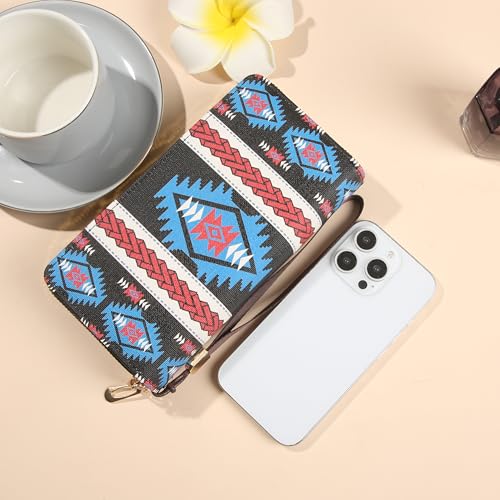 Wallet Purse for Women, Boho-Inspired Wristlet Wallet with Credit Card Holder(Blue) 1