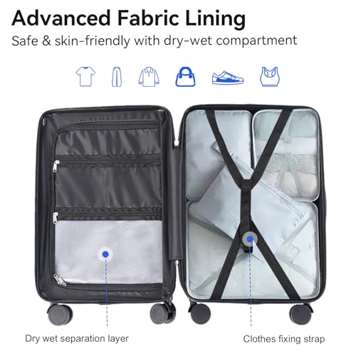 • 【FRONT POCKET LUGGAGE】Travel smarter, not harder! This carry on travel luggage features a smart front-opening design that allows quick 45° to 135° access to your most-needed items—like your laptop, passport or charger—without having to lay the bag flat. Side hooks and cup holder designs can also help you free up your hands. Perfect for security checks or on-the-go retrieval, this innovative design of multifunctional travel suitcase saves time and keeps you organized throughout your journey.