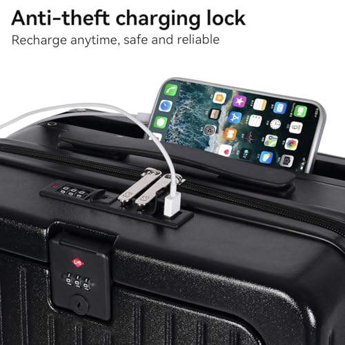 • 【HUMANIZED DESIGN】The travel luggage is equipped with a dry wet separation layer, making your items healthy and organized. The password lock of the luggage suitcase comes with USB and Type-C charging ports, which can provide great convenience for your travel while ensuring safety. Please note that you need to bring your own power bank. The pull rod of the front opening carry on luggage can be adjusted in multiple levels to easily customize for users of different heights.