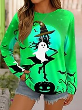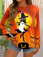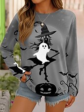 More information about Halloween Women's T shirt Witch Graphic Pumpkin Vintage Fashion Stylish Long Sleeve Crew Neck Round Neck Regular Tops Weekend Print Purple Orange Green Gray Spring Fall