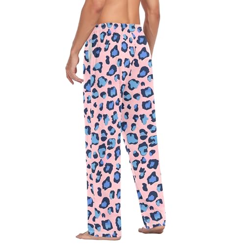 HOT ! Men's Pajama Bottom Blue Leopard Unique Cotton Pajama Pants Drawstring Sleepwear Long Pants Pockets