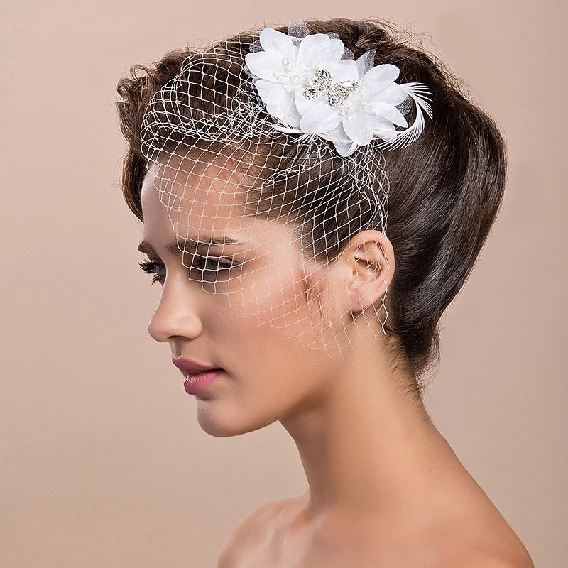 HOT ! Net Blusher Veils / Wedding Fascinators / Headwear with Floral 1pc Special Occasion / Party / Evening / Party / Cocktail Headpiece