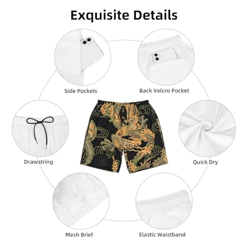 Oriental Dragon Print Men's Casual Beach Shorts Elastic Waist Drawstring Dry Quick Summer Shorts 7