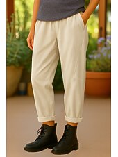 More information about Women's Chinos Harem Pants Vacation Fashion Streetwear Full Length High Waist Plain Pocket Elastic Waistband Comfy Soft Comfortable Micro-elastic Outdoor Street Black Pink Brown Army Green Spring