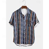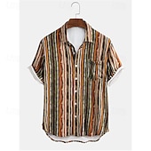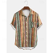 More information about Men's Stripes Button Up Shirt Short Sleeve Vintage Hawaiian Dailywear Causal Casual Summer Spring Collared Shirts Pocket 3D Print Yellow Blue Green