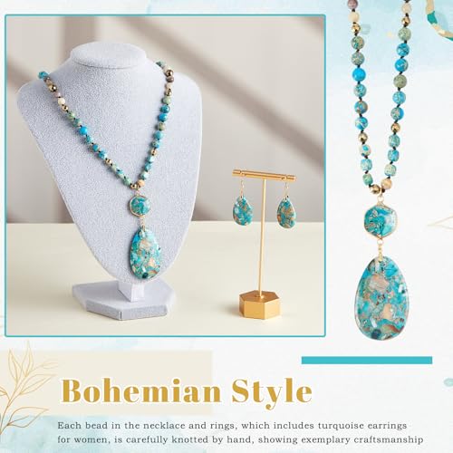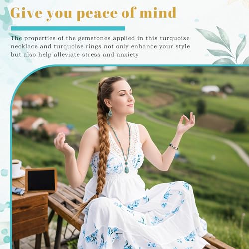 • Bohemian Style Package: this stunning set, featuring a turquoise necklace and two turquoise earrings, embodies a Bohemian style; It offers outstanding versatility, suitable for any occasion; The distinctive design highlights your style and personality, which reflects in the turquoise jewelry for women