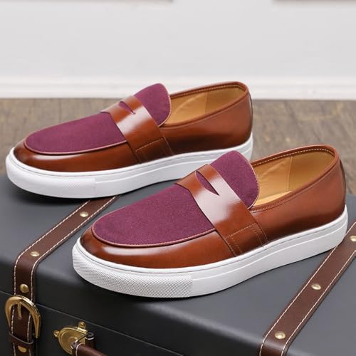 Men's Suede & Patent Leather Loafers - Lightweight Casual Sneakers with Sport Rubber Sole for Business, Office & Travel 6