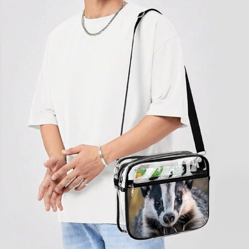 HOT ! U.S. Badgers Large Clear Stadium Bag Clear Mini Messenger Bags with 2 Compartments Crossbody Bag