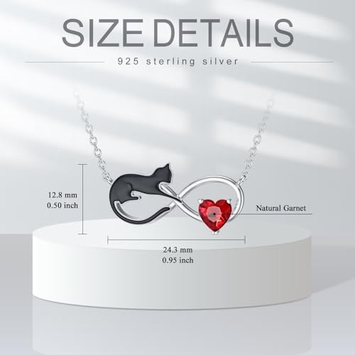 Natural Garnet Black Cat Necklace for Women 925 Sterling Silver Infinity and Cat Pendant Black Cat Jewelry Gifts for Cat Lovers 5