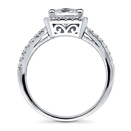 BERRICLE Sterling Silver Halo Wedding Engagement Promise Rings Split Shank Ring for Her, Princess Cut Cubic Zirconia CZ 1