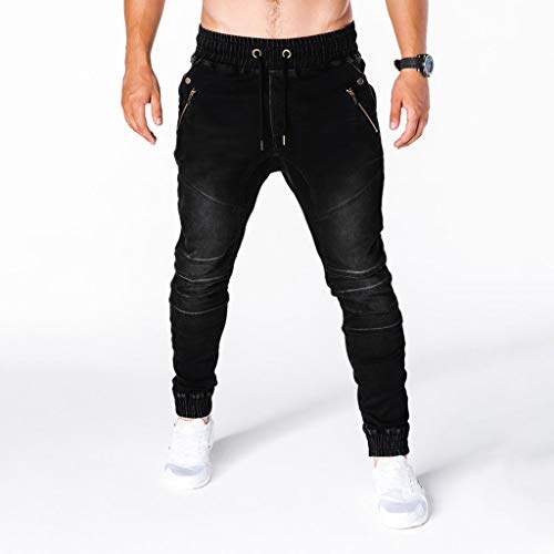 More information about Men's Slim Tapered Jeans Y2k Fashion Elastic Waist Drawstring Washed Skater Denim Pants Stretch Joggers Hip Hop Jeans