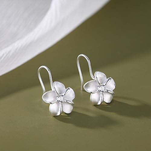 HOT ! Dainty CZ Flower Dangle Hook Earrings for Women Silver Plated Crystal Flowers Charms Drop Fish Hook Stud Lightweight Elegant Christmas Wedding Holiday Jewelry Gifts