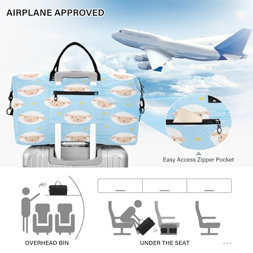 HOT ! ​​Large Foldable Travel Duffel Bag, Waterproof Gym Bag for Men & Women, Carry-On Luggage Weekender Overnight Bag, Sheep Stars Blue