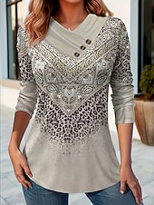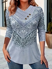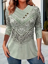 More information about Women's T Shirt Graphic Paisley Tribal Vintage Stylish Classic Long Sleeve V Neck Asymmetric Neck Regular Tops Daily Buttons Print Asymmetrical Sage Green Dusty Blue Khaki Fall Winter
