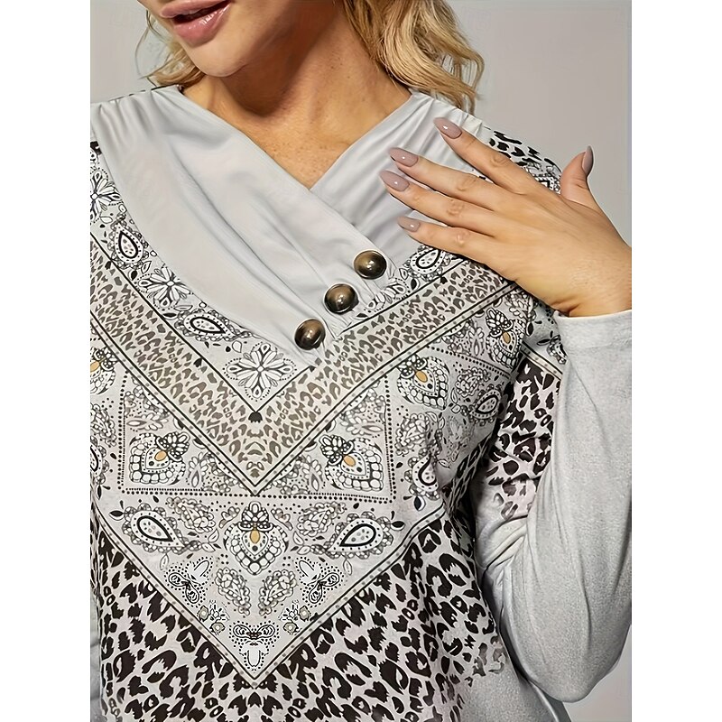 HOT ! Women's T Shirt Graphic Paisley Tribal Vintage Stylish Classic Long Sleeve V Neck Asymmetric Neck Regular Tops Daily Buttons Print Asymmetrical Sage Green Dusty Blue Khaki Fall Winter