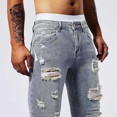 HOT ! Tapered Denim Pants Men Vintage Classic Utility Work Ripped Jeans Disco Party Stretch Steampunk Stretchy Street Wear