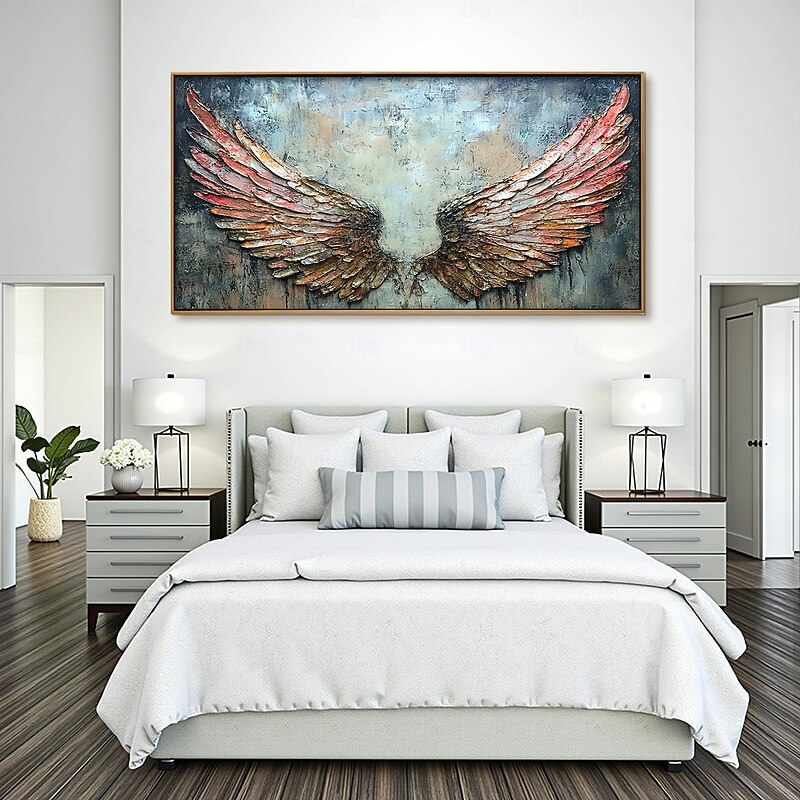 $100.99 - Handmade Original Colorful Colorful Wings Oil Painting On Canvas Wall Abstract Feather Painting for Home Decor With Stretched Frame/Without Inner Frame Painting 2025. Shop for cheap Still Life Paintings online? Buy at lightinthebox.com on sale today!