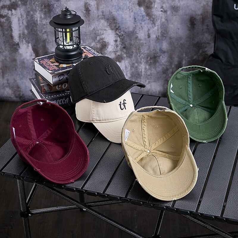 Highlights [Fabric] Crafted from high-quality polyester, this men's baseball cap ensures breathability and comfort, making it perfect for all seasons. The durable material provides a lightweight feel that is ideal for outdoor activities. [Fit] Designed with a classic six-panel construction, the cap includes embroidered eyelets for superior ventilation. The curved brim offers an adjustable fit, allowing you to customize the sizing for a secure and comfortable feel. [Design Highlights] Featuring a minimalist embroidered letter design on the front, this cap combines casual streetwear style with a modern touch. The adjustable strap at the back ensures a customized fit, while the variety of available colors makes it a versatile accessory that complements numerous outfits. [Occasions] Perfect for daily wear, street outings, and casual gatherings. Whether you're heading out for a day in the sun or simply looking to add a stylish element to your everyday attire, this cap serves as both a functional and fashionable choice. [Sizing] Available in Size M, this adjustable cap is designed to suit a range of head sizes, providing a comfortable and customized fit for most men.