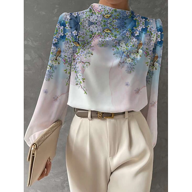 More information about Women's Blouse Long Sleeve Fashion Floral Butterfly Print Regular Tops Round Neck Work Royal Blue Blue Purple Green Khaki Spring & Fall