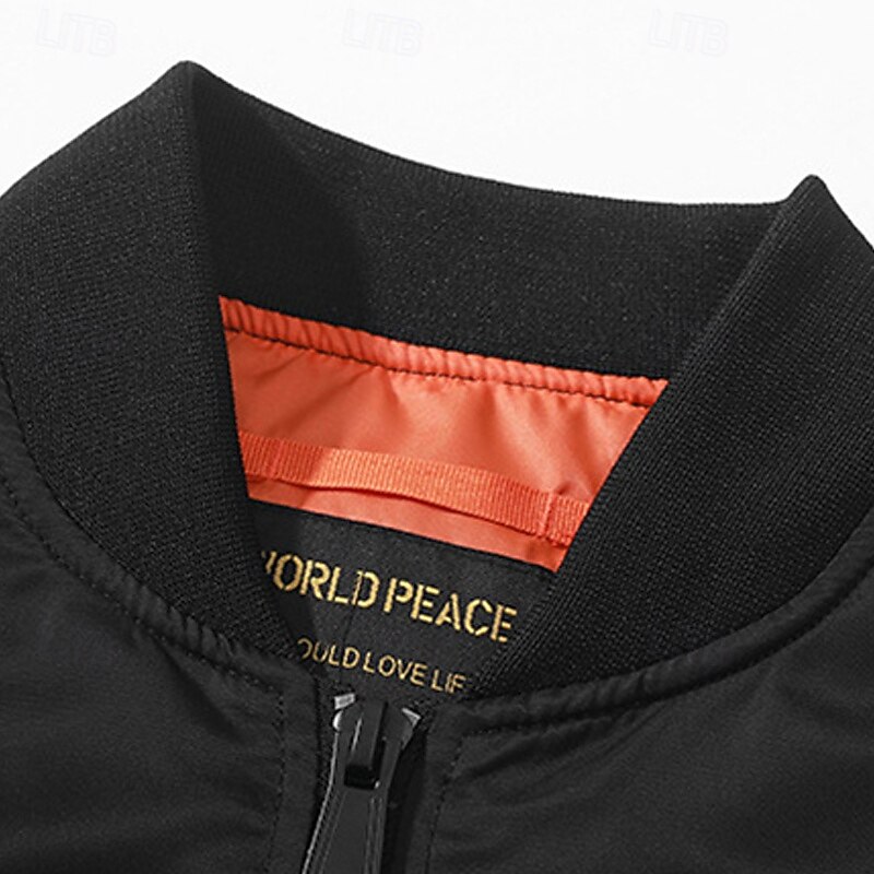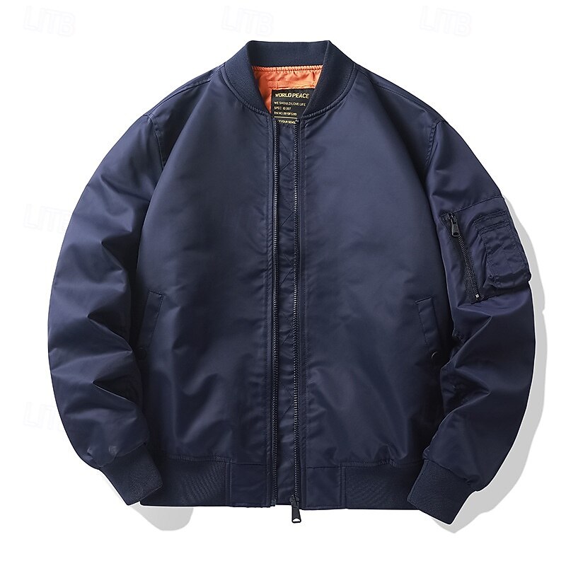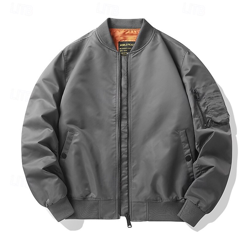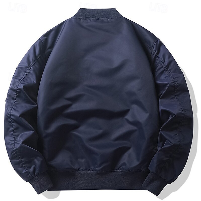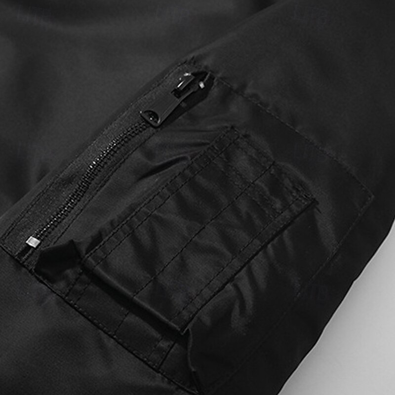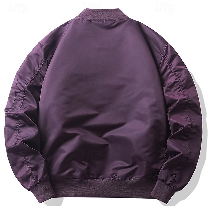 More information about Men's Bomber Jacket Casual Jacket Vacation Daily Pocket Spring Fall Plain Fashion Classic Stand Collar Regular Black Purple Army Green Dark Blue Gray Jacket